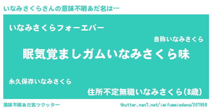 | 男性向けラノベタイトル風あだ名 | 『おまえをオタクにしてやるから、俺をいなみさくらにしてくれ! 』 |