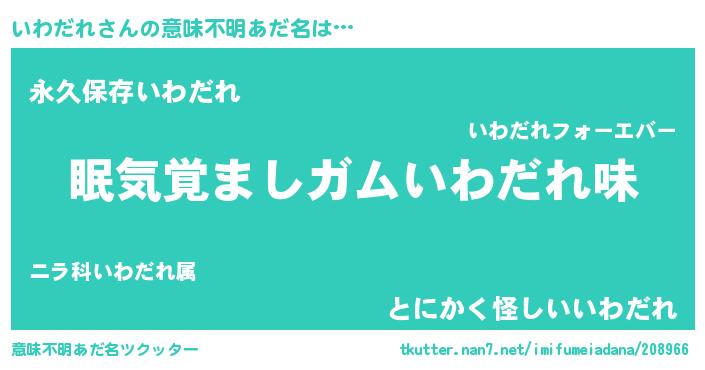 | ヒーロー風カッコイイあだ名 | 『正義の使者いわだれ』『ネオイワダレ』 |