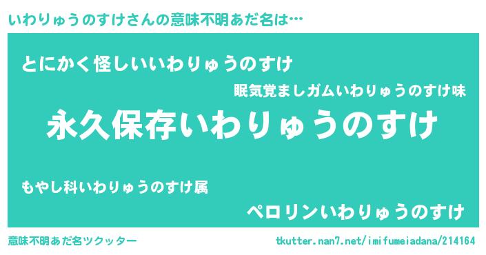 | 女子向けラノベタイトル風あだ名 | 『異世界で失敗しない100のいわりゅうのすけ』 |