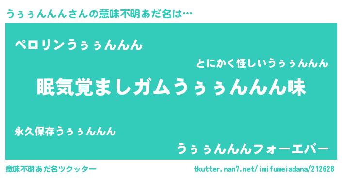 | ヘコむあだ名 | 『うぅっふぃ~』『豆乳』『うぅっぺ』 |