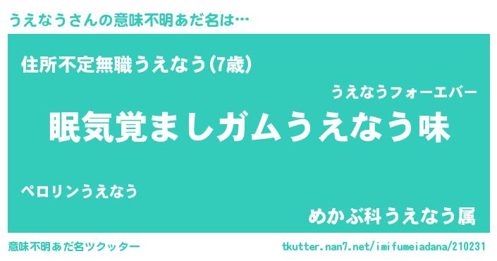 | ヘコむあだ名 | 『なまこ酢』『うえにー』『うえっぺ』 |