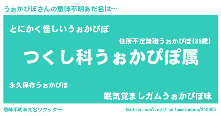 | ヘコむあだ名 | 『うぉっ子』『うぉかぴぽ(笑)』 |
