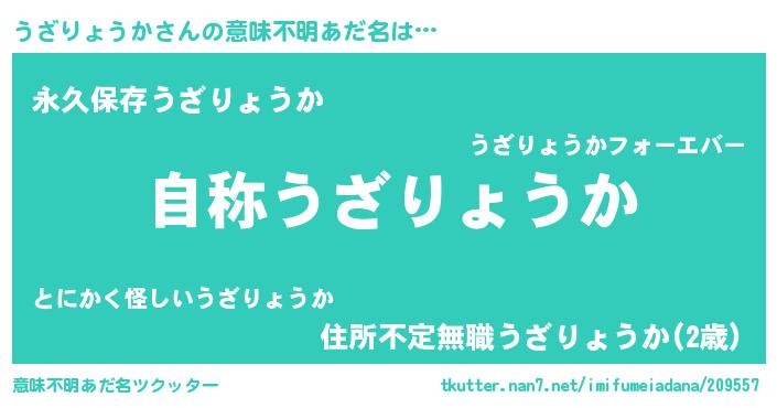 | ヒーロー風カッコイイあだ名 | 『究極戦士ウザリョウカ』『仮面ウザダー』 |