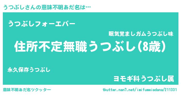 | ポケモン風あだ名 | 『ウーツイ』『ウツブダネ』 |