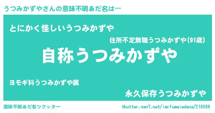 | 肩書あだ名 | 『うつみかずや総統』『うつみかずや団長』 |