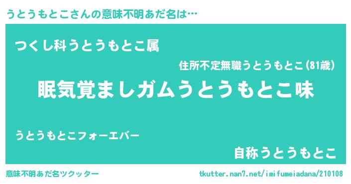 | ヘコむあだ名 | 『豆乳』『うともー』『うとぷりん』 |