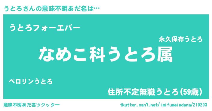 | 男性向けラノベタイトル風あだ名 | 『転生したらうとろだった件』 |