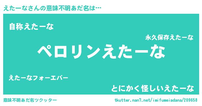 | 胡散臭い通販商品みたいなあだ名 | 『必ず成功するブレスレット…その名も「えたーな」』 |