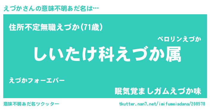 | 欧米人風あだ名 | 『アンジェラ・えづか』『ダニエルえづか』 |