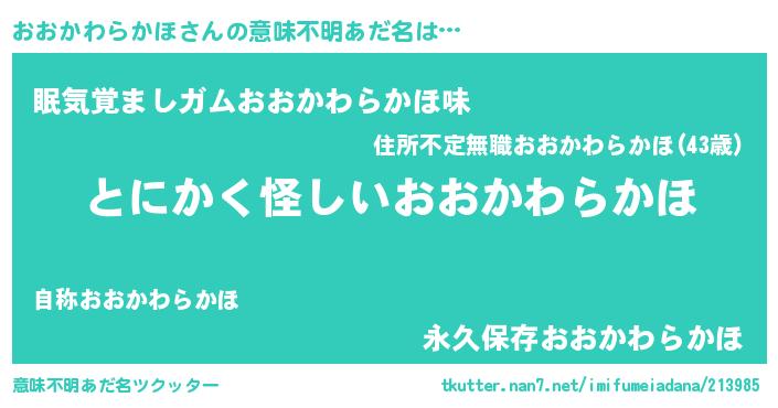 | 胡散臭い通販商品みたいなあだ名 | 『伝統あるネックレス…その名も「おおかわらかほ」』 |