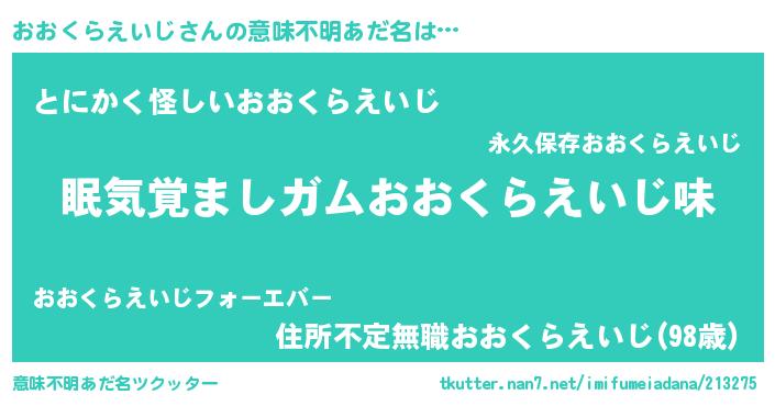 | 女子向けラノベタイトル風あだ名 | 『おおくらえいじ恋絵巻』 |