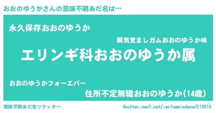 | 料理風あだ名 | 『おおのゆうかごはん』 |