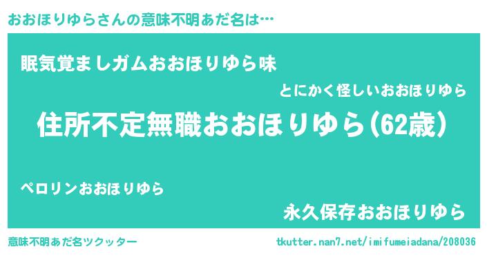 | ヘコむあだ名 | 『おおほりゆら(爆)』『おおを』 |
