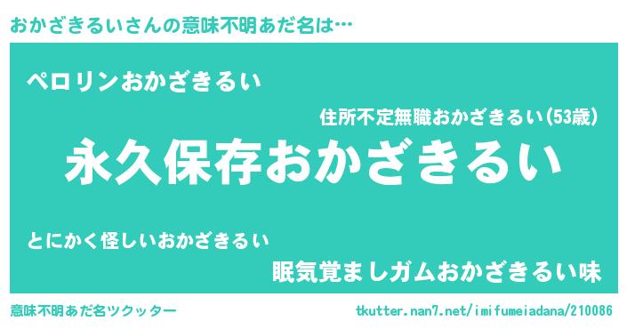 | 胡散臭い通販商品みたいなあだ名 | 『絶対に幸福をもたらす水素水…その名も「おかざきるい」』 |