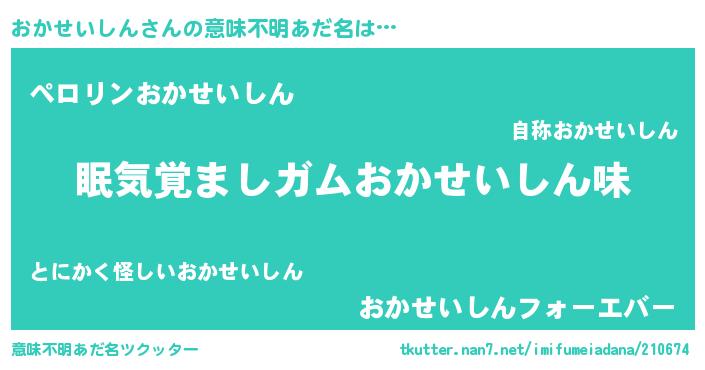 | 欧米人風あだ名 | 『ダニエルおかせいしん』 |