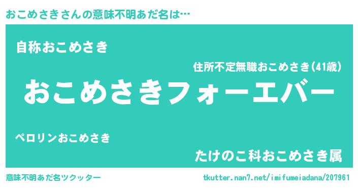 | ファンタジー風あだ名 | 『エターナルオコメサキー』『ゼオコトゥ』 |