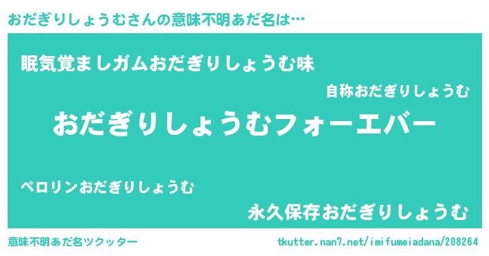 | 男性向けラノベタイトル風あだ名 | 『やはりおだぎりしょうむの青春ラブコメはまちがっている 』 |