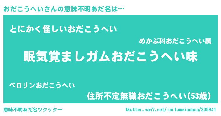 | 男性向けラノベタイトル風あだ名 | 『おだこうへいに滅ぼされるだけの簡単なお仕事です』 |