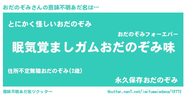 | 男性向けラノベタイトル風あだ名 | 『おまえをオタクにしてやるから、俺をおだのぞみにしてくれ! 』 |