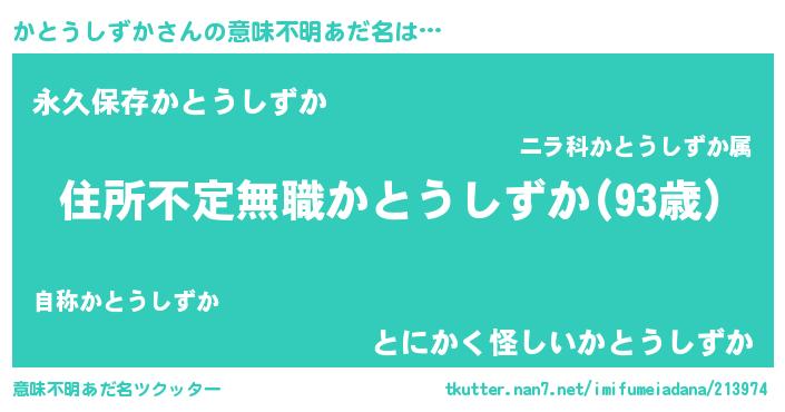 | ヘコむあだ名 | 『かとうしずか(遠い目)』『かとお』 |