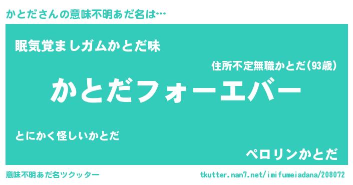 | 欧米人風あだ名 | 『かとだクリステル』『ダニエルかとだ』 |