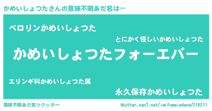 | 欧米人風あだ名 | 『かめいしょつたクリステル』 |