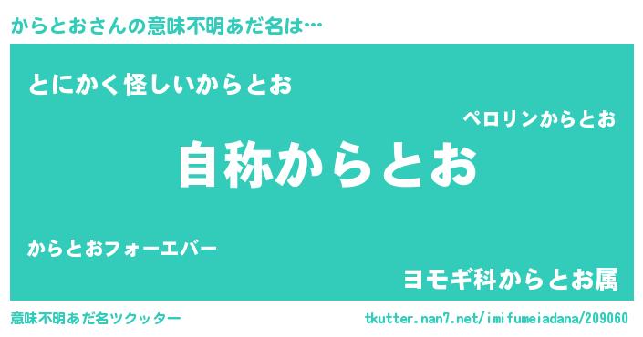 | 肩書あだ名 | 『からとお総統』『からとお機長』 |