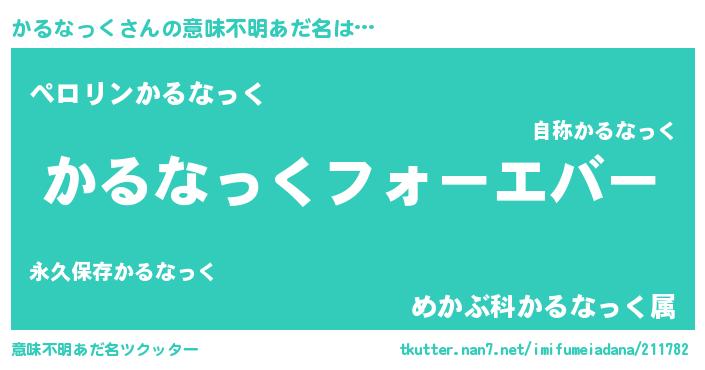 | 男性向けラノベタイトル風あだ名 | 『うちのかるなっくが世界を掌握している!』 |