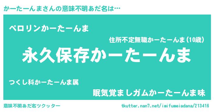 | 胡散臭い通販商品みたいなあだ名 | 『来世でも幸せになれる健康食品…その名も「かーたーんま」』 |