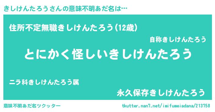 | ポケモン風あだ名 | 『ヒキシケンタロウ』『キーシイ』 |
