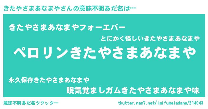 | 男性向けラノベタイトル風あだ名 | 『きたやさまあなまやの憂鬱』 |