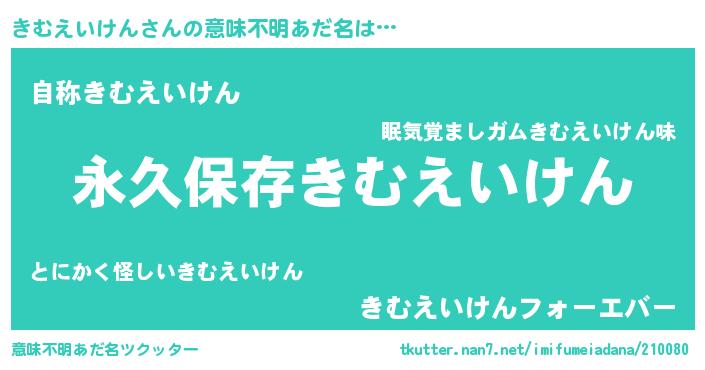 | 男性向けラノベタイトル風あだ名 | 『きむえいけんという概念が存在しない退屈な世界 』 |