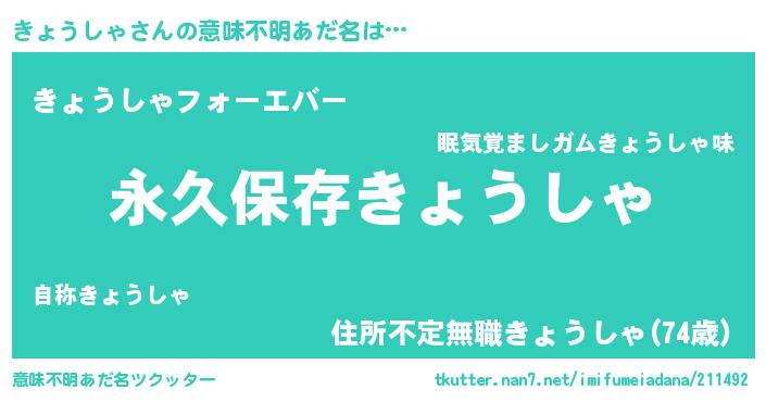 | 胡散臭い通販商品みたいなあだ名 | 『来世でも幸せになれる水素水…その名も「きょうしゃ」』 |