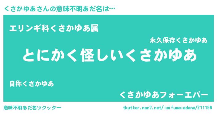 | 欧米人風あだ名 | 『アンジェラ・くさかゆあ』 |