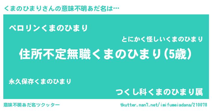 | 男性向けラノベタイトル風あだ名 | 『この素晴らしい世界にくまのひまりを!』 |
