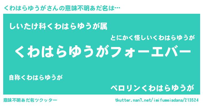 | ファンタジー風あだ名 | 『エターナルクワハラユウガー』 |