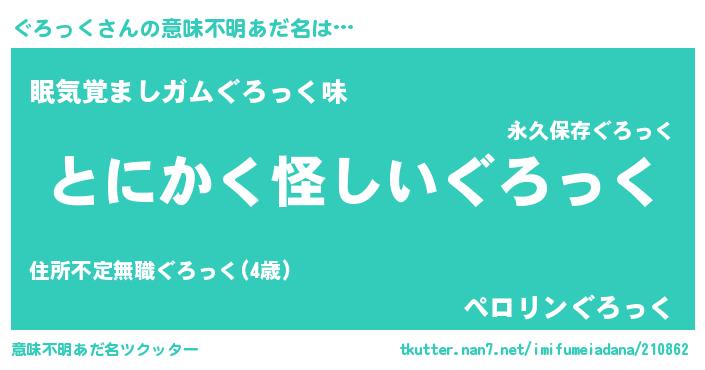 | 男性向けラノベタイトル風あだ名 | 『ダンジョンにぐろっくを求めるのは間違っているだろうか』 |