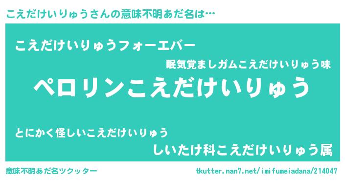 | ヒーロー風カッコイイあだ名 | 『スーパーコエダケイリュウ』 |