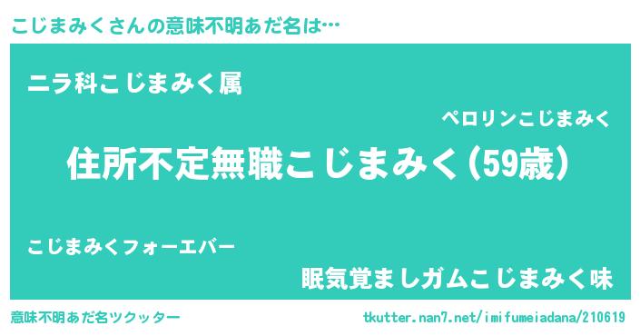 | ヒーロー風カッコイイあだ名 | 『仮面コジダー』『慈愛の使者こじまみく』 |