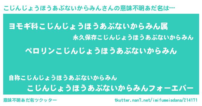 | ヒーロー風カッコイイあだ名 | 『スーパーコジンジョウホウアブナイカラミン』 |