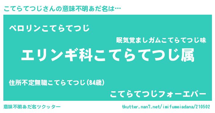| 男性向けラノベタイトル風あだ名 | 『コテラテツジスレイヤー』 |