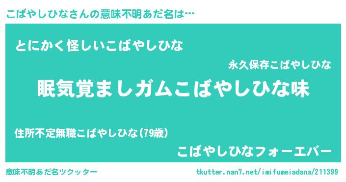 | 欧米人風あだ名 | 『こばやしひな・ステッグマイヤー』 |