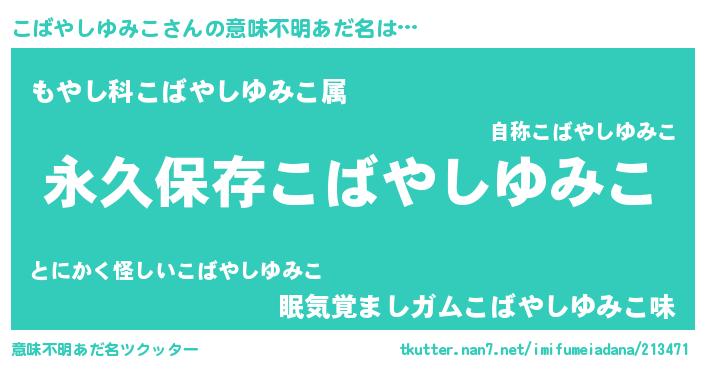 | 胡散臭い通販商品みたいなあだ名 | 『来世でも幸せになれる健康食品…その名も「こばやしゆみこ」』 |