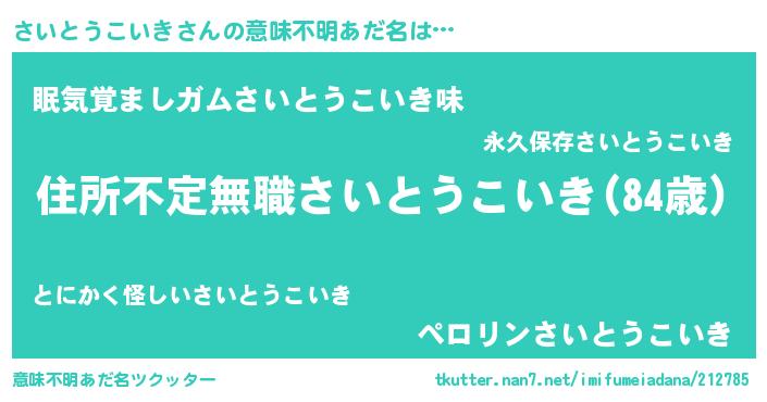 | 欧米人風あだ名 | 『さいとうこいき・ステッグマイヤー』 |