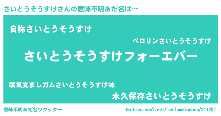 | 欧米人風あだ名 | 『さいとうそうすけクリステル』 |