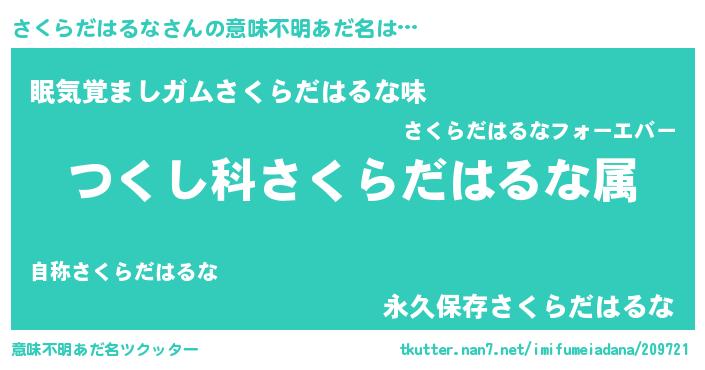 | 男性向けラノベタイトル風あだ名 | 『さくらだはるな~年齢イコール彼女いない歴の魔法使い~』 |
