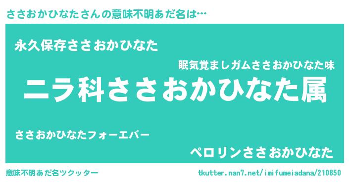 | 欧米人風あだ名 | 『トリンドルささおかひなた』 |