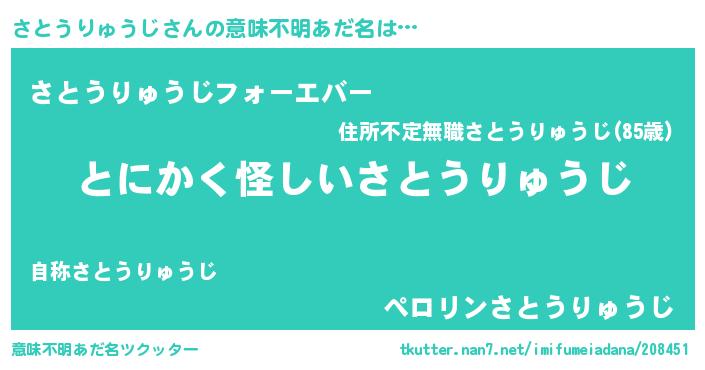 | ポケモン風あだ名 | 『ヒサトウリュウジ』『サトウダネ』 |