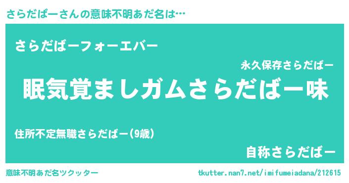 | 男性向けラノベタイトル風あだ名 | 『うちのさらだばーが世界を掌握している!』 |
