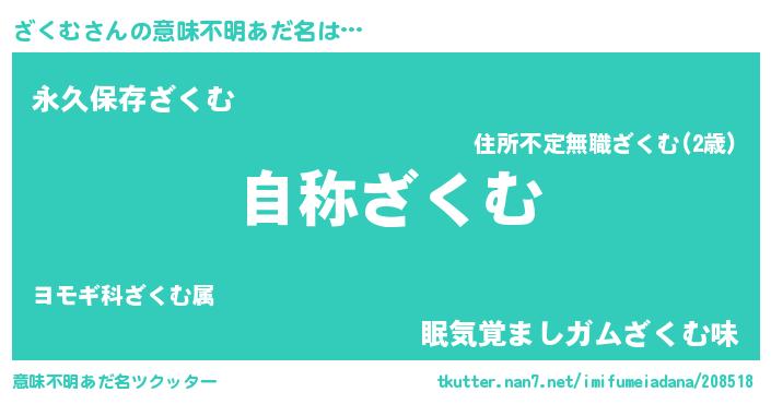 | ヘコむあだ名 | 『ざくむ(苦笑)』『ざくっちょ』 |
